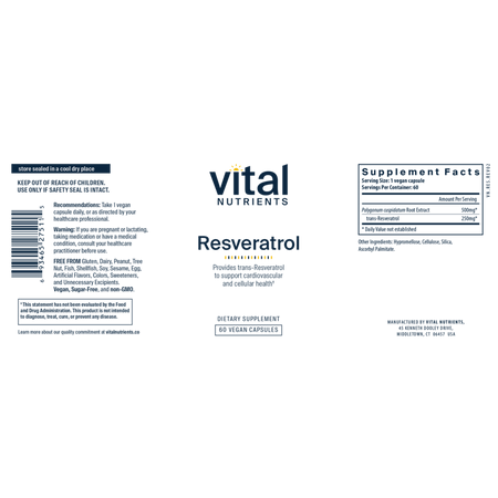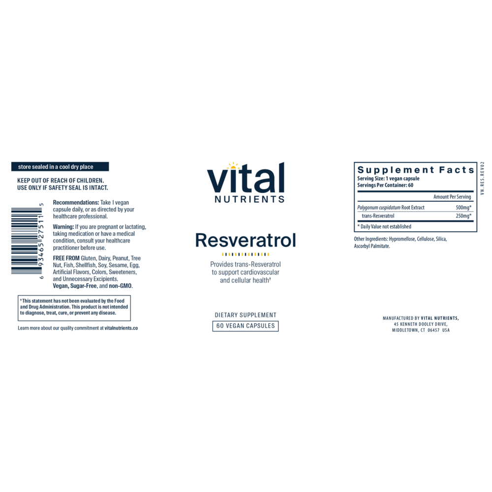 Resveratrol is a naturally occurring polyphenol known for its powerful antioxidant and cardioprotective properties.* Found in red wine, red grape skins, purple grape juice, mulberries, and especially high concentrations in Polygonum cuspidatum, resveratrol supports cardiovascular, cellular, and overall metabolic health.* The trans-resveratrol form is considered the primary active isomer and is rapidly absorbed for effective biological activity.*